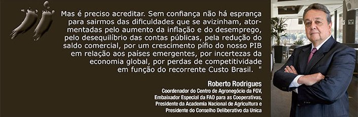 O Congresso, por sua vez, também deu mostras de que não se submeterá facilmente às pressões oficiais não construtivas, e o desmanche dos chamados Conselhos Sociais foi emblemático. É preciso acreditar em mudanças, até porque elas são realmente necessárias e estão no âmago dos sonhos da população brasileira. Muito bem, como fica o setor sucroenergético nesse cenário?